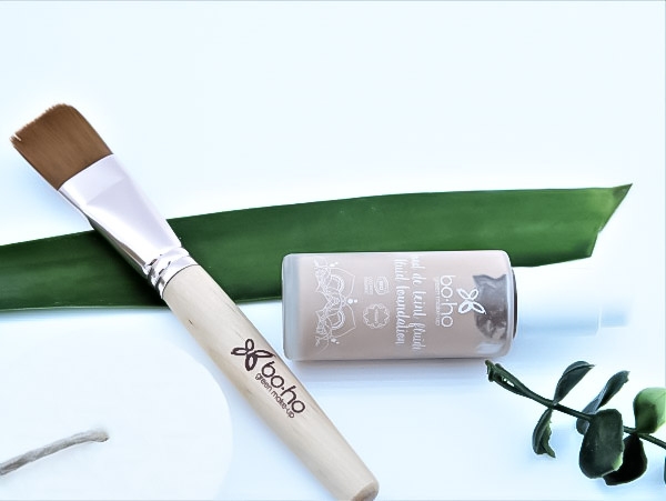 Côté teint, j'ai eu recours à mon produit chouchou actuel, le Fond de Teint Fluide de Boho Green que j'ai appliqué avec un pinceau de la même enseigne. Je le trouve parfait pour véritablement apporter une couvrance sans surcharge et embellir le teint. Il demeure très naturel tout en sublimant l'épiderme. Il cache les petits défauts, lisse le grain de peau et illumine. Un produit idéal lorsque nous cherchons à avoir un teint léger mais néanmoins travaillé.