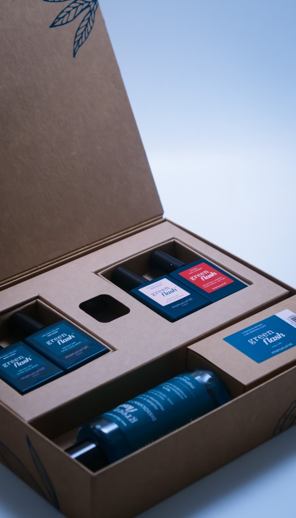 Je trouve ce coffret idéal pour celles qui souhaitent obtenir une jolie manucure durant quelques jours avec des vernis sans molécules sensibilisantes (les Green Flash sont HEMA- free), donc plus respectueux pour la santé mais aussi la planète.