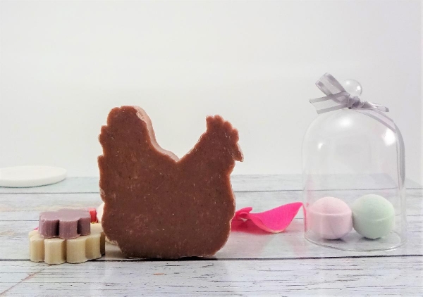Puisque le chocolat demeure la douceur de cette fête, Autour du Bain a confectionné une poule bien dodue pour vous faire fondre de plaisir et mettre votre appétit en émoi. Petits et grands ne résisteront pas à l'allure si alléchante de ce grand savon offrant l'illusion d'une fabrication toute chocolatée. Un appel à la gourmandise évident et une folle envie de croquer dedans! Votre peau ne pourra que vous remercier de cet instant de pure délectation où l'imagination et les sens s'invitent à la magie de Pâques... Glycérine et huiles végétales seront entre autre les ingrédients bienfaiteurs de cette création savoureuse pour une peau douce et pleinement nourrie.