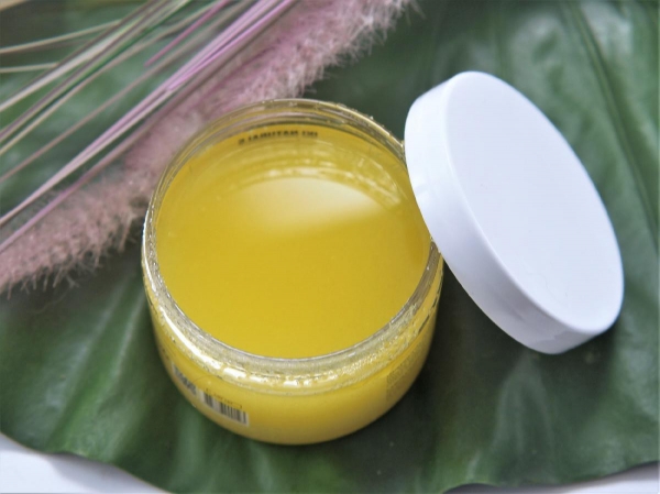 Belle Au Naturel a sélectionné un soin alliant exfoliation et nutrition à travers ce produit au parfum exotique et évocateur… enrobé de particules de sucre fin pour rénover la peau en douceur, ce gommage s'habille également de diverses huiles pour laisser une grande sensation de confort et ainsi vêtir l'épiderme d'un voile satiné. Il se compose de: