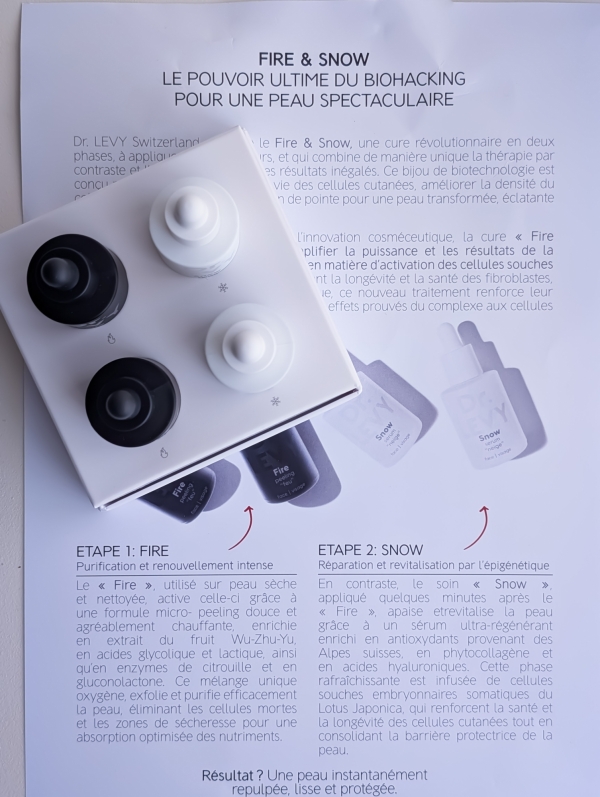 La marque suisse Dr. Levy innove une fois de plus et lance Fire & Snow, une cure de 20 jours intégrant 2 sérums pour une peau visiblement… rajeunie!
