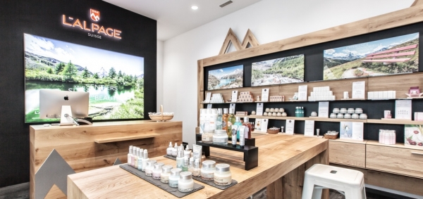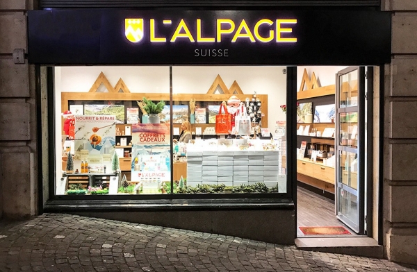 Se situant dans une rue très fréquentée de Lausanne, la boutique L'Alpage est tout d'abord un enchantement pour les yeux: meubles en bois massif suisse, étalages propres et raffinés, ce lieu est d'une grande clarté et d'une belle cohérence avec la philosophie de la marque. De plus, L'Alpage privilégie le contact personnalisé avec les clients pour qu'ils puissent bénéficier des meilleurs conseils. C'est pourquoi, un présentoir orné de l'ensemble des produits se tient à notre disposition afin de pouvoir les tester.
