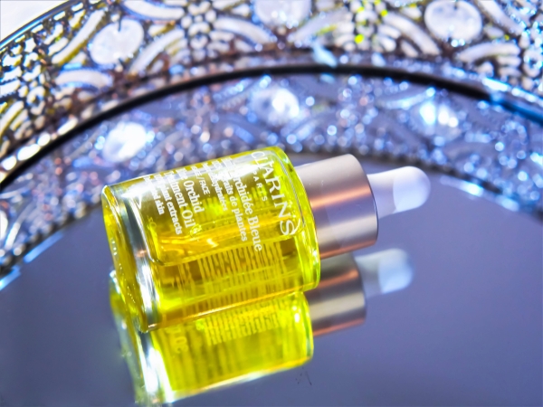 L'huile à l'orchidée bleue de Clarins représente un indispensable à utiliser en cure lorsque la peau présente des signes de fatigue et de déshydratation. Elle est un best-seller de la marque qui allie la sensorialité, le bien-être et l'efficacité. L'huile est imprégnée de la magie du SPA de la marque ainsi que de sa philosophie; elle offre à la fois un véritable moment de délectation olfactive et tout le savoir-faire de Clarins.