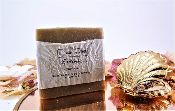 Nommée Le Medina, cette fabrication parfumée se compose de Rhassoul, un ingrédient à la fois purifiant et adoucissant qui offrira une exfoliation tout en délicatesse. Elle est, de plus, enrichie en huile d'Amande douce, en beurre de Karité et en Cacao biologique afin de protéger et nourrir notre peau.