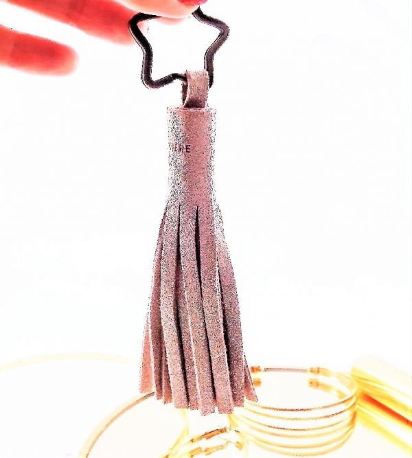 Ce porte-clefs rose gold tout pailleté habillera notre sac avec féminité et originalité! Il a été conçu en cuir bovin authentique par Sophie avec La Cartablière, une entreprise entièrement française qui fabrique des pièces tendances et tellement élégantes!!!!!