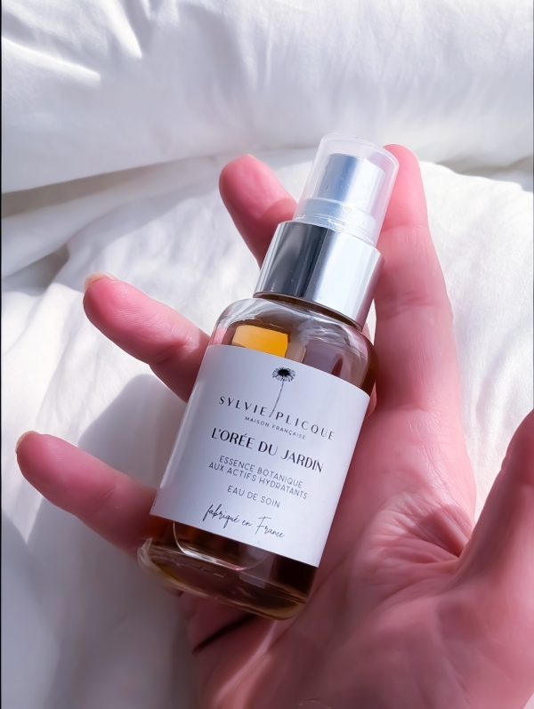 L'Orée du Jardin, une invitation poétique et sensorielle à plonger dans les bienfaits des plantes… cette essence renferme une synergie d'actifs naturels et pointus tels que des eaux florales, de l'hydrolat, de l'Acide Hyaluronique, du Beta-Glucan issu de la levure naturelle, des extraits de fleurs et des cellules souches de Narcisses des poètes.