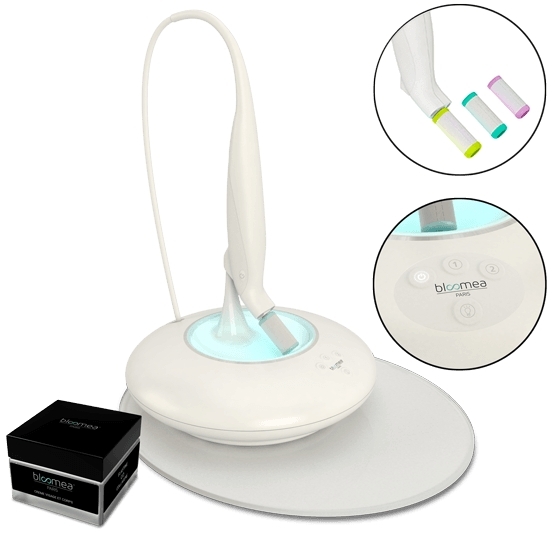 Durant toute la durée du soin (environ 30 minutes), une lumière (longueurs d'ondes actives sur la peau proches du rouge, 633 nm) est émise par la pièce à main afin de renforcer l'efficacité et l'action régénérante du protocole Bloomea.