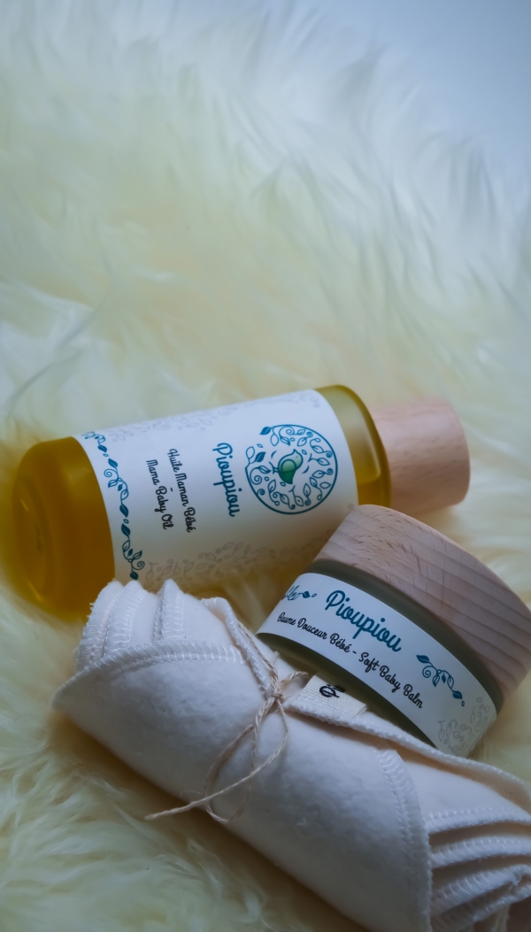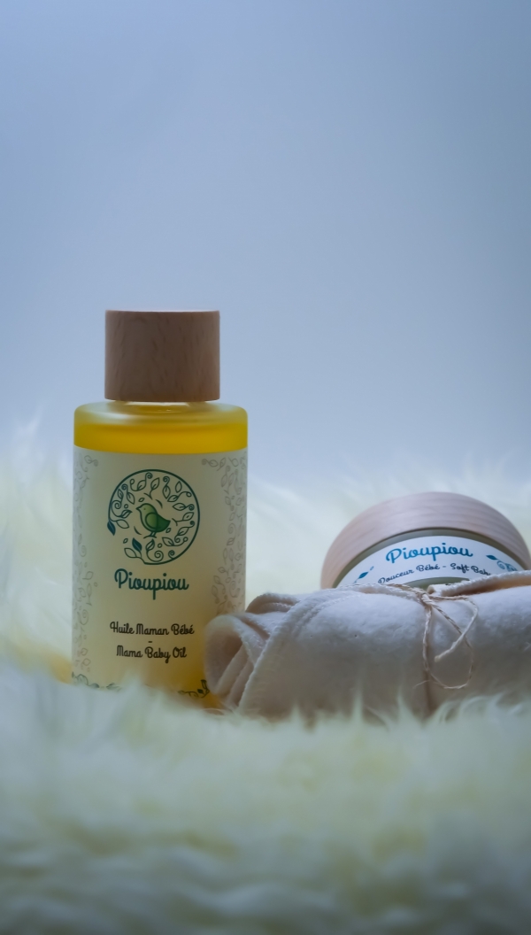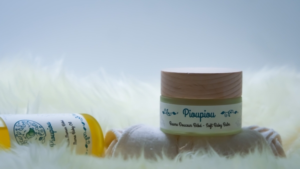 À ce jour, la vitrine Pioupiou affiche 2 soins pour toute la famille: l'Huile Maman Bébé et le Baume Douceur Bébé, des produits simples et efficaces qui feront la part belle à toutes les peaux en quête de douceur.