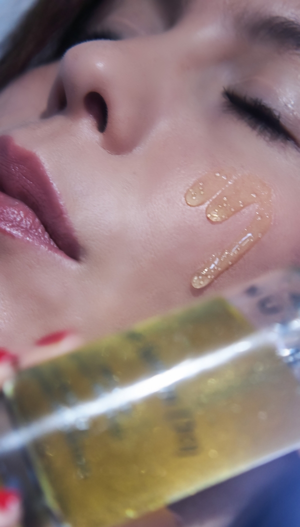 L'esthétique du Flacon est très réussie et renferme des petites perles nageant au coeur d'une galénique somptueusement dorée.