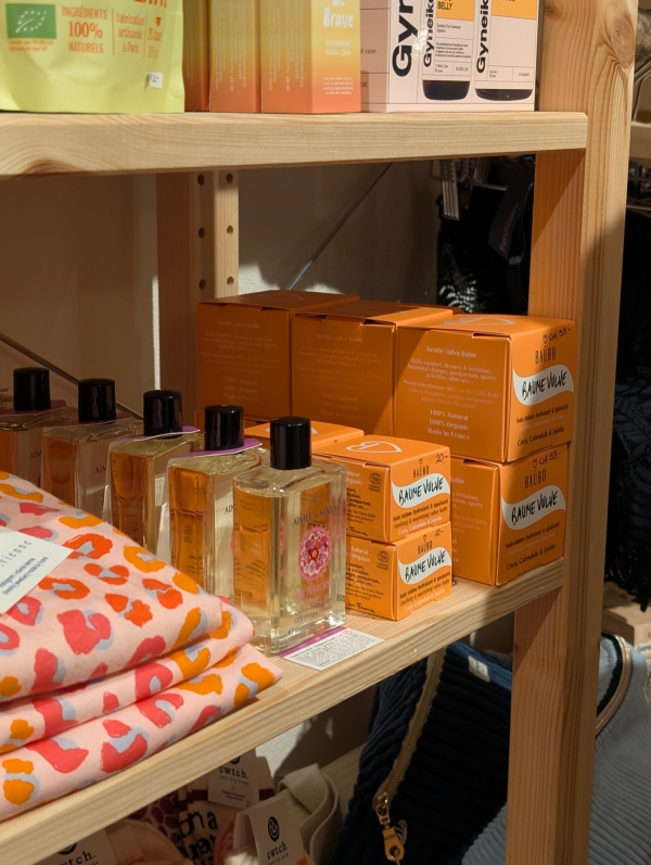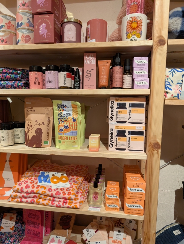 La boutique rassemble une sélection de produits naturels et éthiques choisis pour accompagner toutes les étapes de la vie féminine, incluant les règles, la maternité, la ménopause, l'intimité, la sexualité, et même l'endométriose.