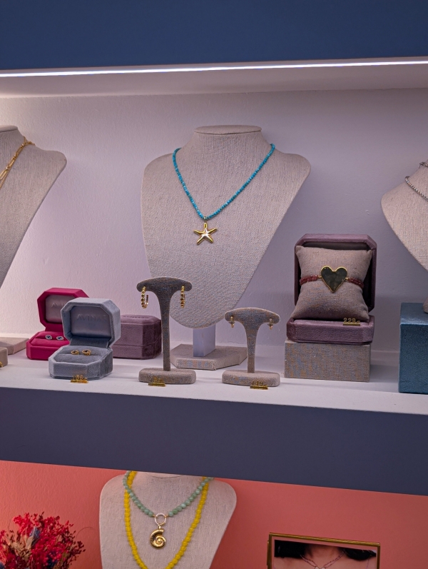 Chaque collection est imprégnée de symboles, de nuances vibrantes, et de l'éclat des pierres précieuses et semi-précieuses, autant de signatures qui confèrent à chaque bijou ce détail unique et raffiné.