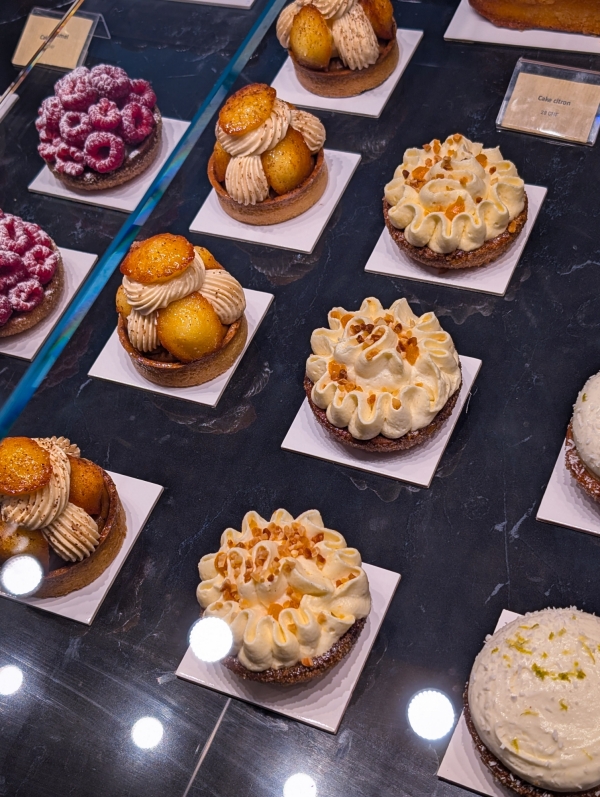 - Les Mini Madeleines au Citron : La signature de cette création. De mini madeleines moelleuses, subtilement imbibées au citron, sont déposées sur le crémeux. Elles apportent le moelleux et la saveur acidulée qui rappellent la madeleine traditionnelle tout en offrant une belle fraîcheur pour contraster avec le caramel.