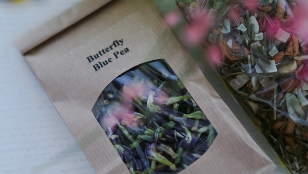 "Clitoria ternatea est originaire d’Asie tropicale et équatoriale, elle a été introduite en Afrique, en Australie et en Amérique. Elle est réputée en tant que plante aromatique et médicinale. Ses fleurs sont bleues foncées car elles contiennent un pigment naturel: les ternatines anthocyanes. Les anthocyanes sont des molécules de la famille des flavonoïdes aux propriétés antioxydantes puissantes, c'est à dire qu’elles empêchent le stress oxydatif responsable du vieillissement cellulaire".