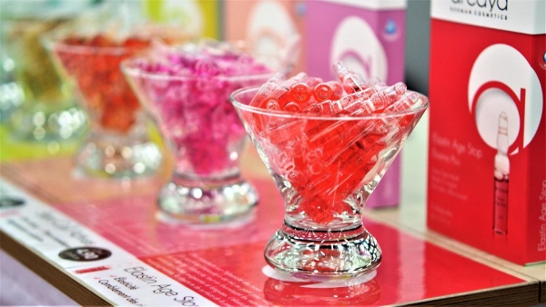 J'ai également pu découvrir la marque Arcaya à travers une multitude de bols colorés dans lesquels se trouvaient des ampoules destinées à offrir des shots d'actifs : acide Hyaluronique, Collagène, Venin de serpent, Élastine,... Il y en a pour tous les goûts et toutes les envies! L'idée étant de nous proposer des minis soins supra concentrés dosés dans une capsule à utiliser selon nos besoins spécifiques pour une soirée par exemple ou une action flash! Mon choix s'est porté sur l'ampoule "Viper" pour un effet botox instantané!