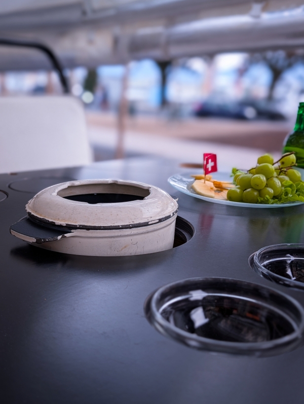 Ce qui frappe immédiatement, c’est le contraste. Tandis que les passants pressés emmitouflés dans leurs manteaux vous regardent avec curiosité, vous savourez votre fromage fondu en admirant le Jet d'eau ou la Vieille-Ville illuminée.