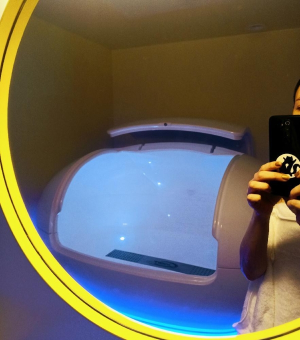 Une fois douché au préalable, il vous suffit de rentrer dans le caisson rempli d'une eau chauffée à 36 degrés (la température corporelle) et de vous y prélasser pendant environ 1 heure. L'expérience commence!
