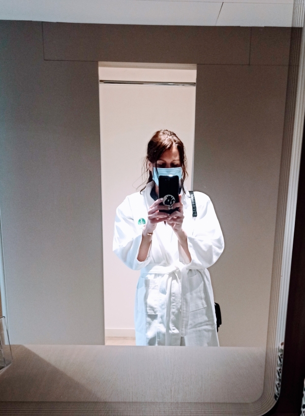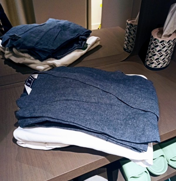 Je fus ensuite priée de me changer et de troquer mes vêtements de ville contre une tenue spécialement conçue pour recevoir mon soin d'acupuncture. Le centre a tout prévu à cet effet! Clé à la main, j'ai tranquillement rangé mes habits dans un casier et enfilé "pyjama" et peignoir pour ma séance bien-être.