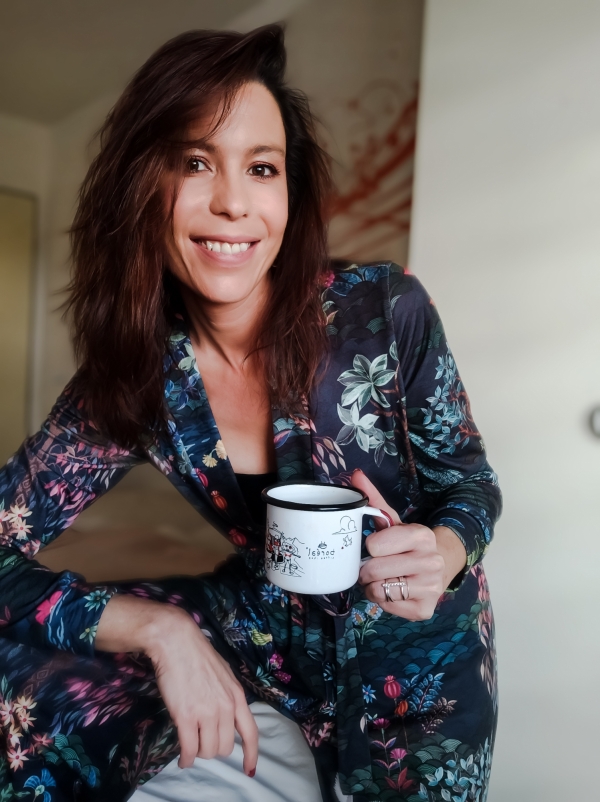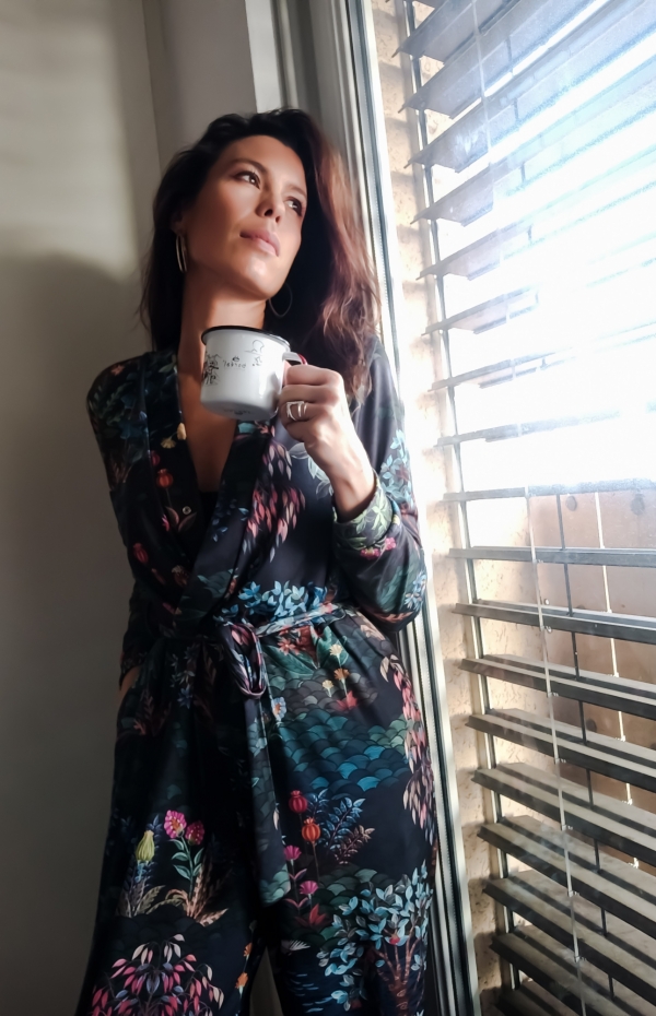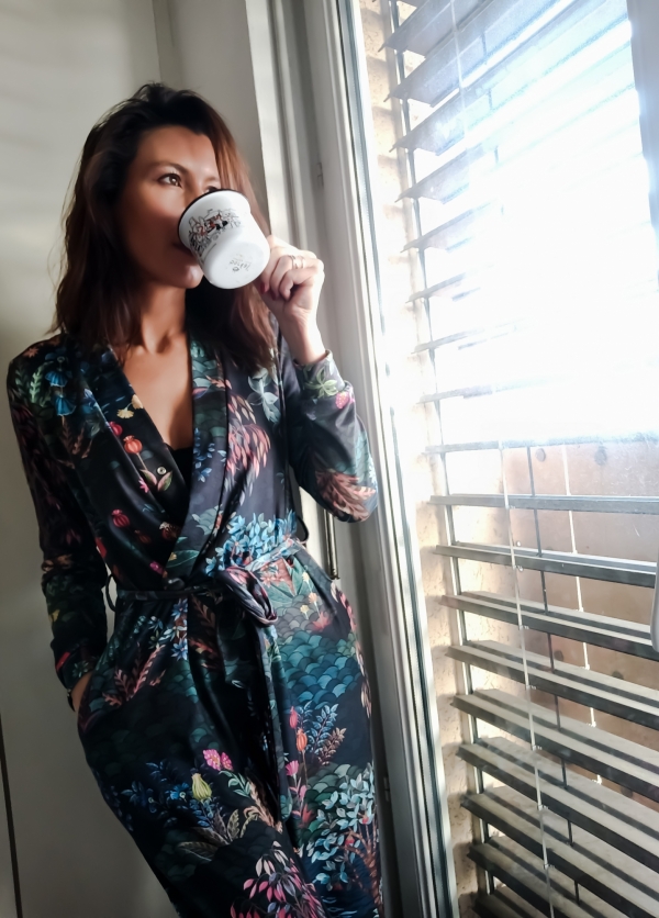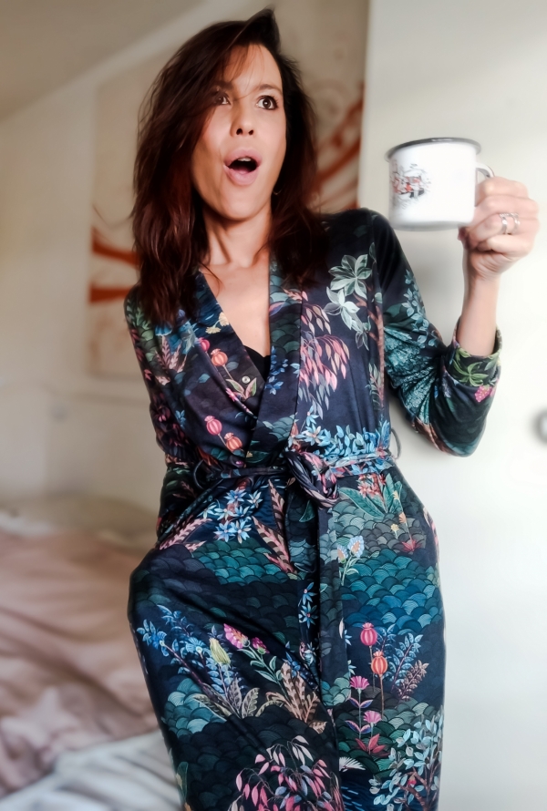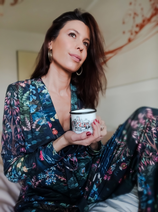 Je dirais même que cette combi a le don de rendre heureux, voire insouciant! J'aime sa gaieté et sa coupe ultra cosy. On s'y sent comme dans un cocon… ou un jardin en fleurs! Elle insuffle un vent de liberté dans notre dressing.